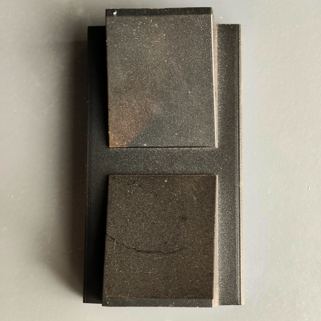 - Two-tier geometric design with clean lines