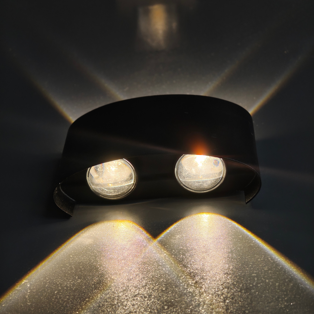 Transform your exterior spaces with our 4-Way Warm White Outdoor Wall Light. This premium fixture combines elegant curved design with precision optical engineering to create one of the most visually striking light patterns available. Four distinct beams intersect to form a dramatic “X” or butterfly pattern that adds depth, dimension, and sophisticated ambiance to any architectural setting.
