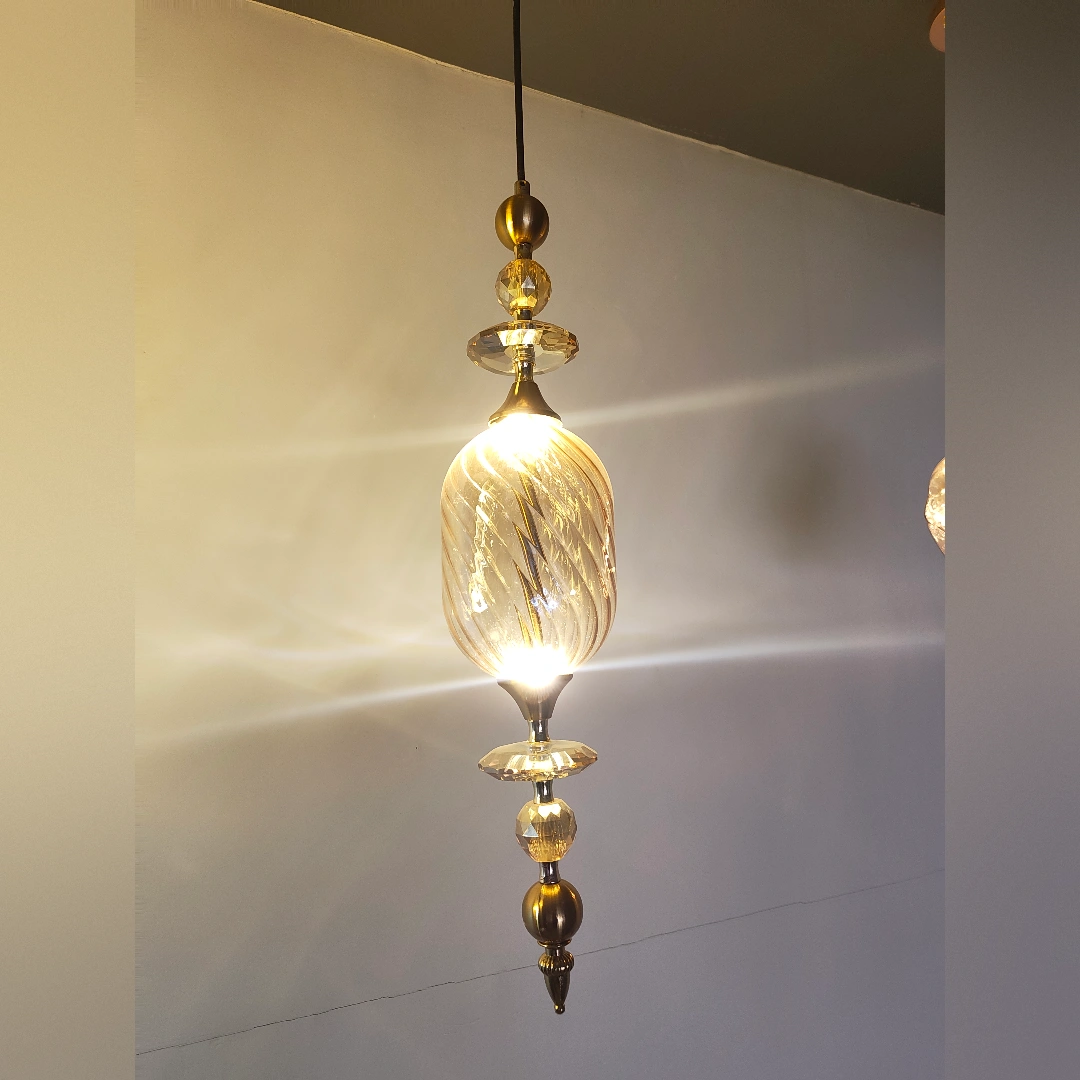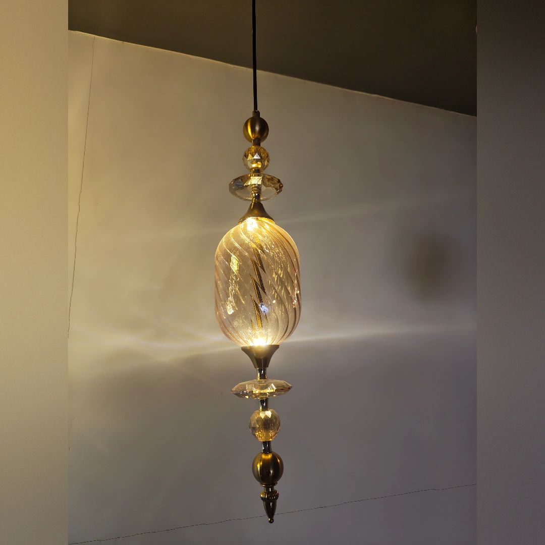 When illuminated, this pendant becomes a glowing amber jewel that radiates warmth throughout your space. The spiral ribbing creates subtle patterns and reflections, while the golden hue adds a touch of luxury and sophistication that elevates your entire interior.