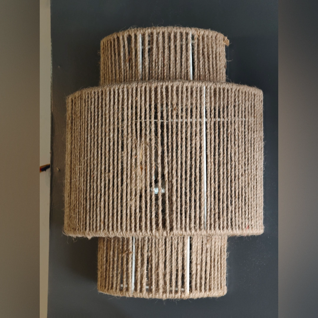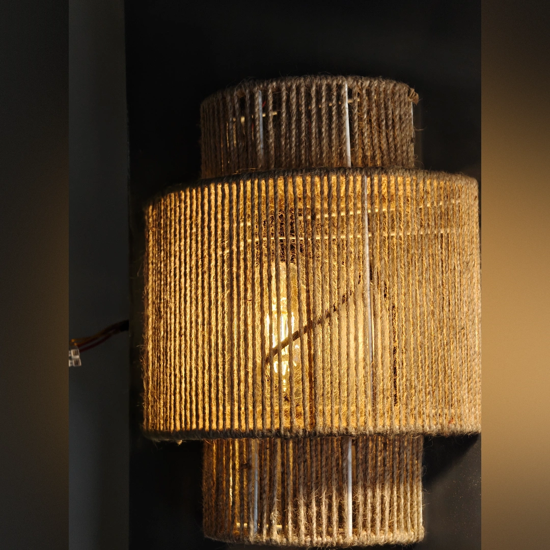 Transform your space with this exquisite handcrafted wall sconce that celebrates natural materials and artisan craftsmanship. Three graduated cylindrical shades wrapped entirely in natural jute rope create a stunning textural statement while casting a warm, inviting glow that turns any wall into a cozy focal point.