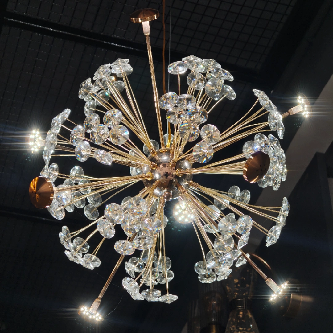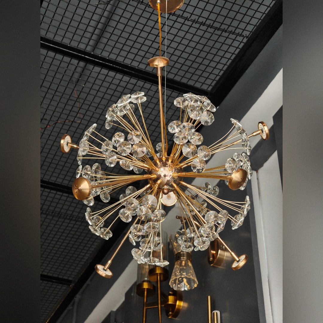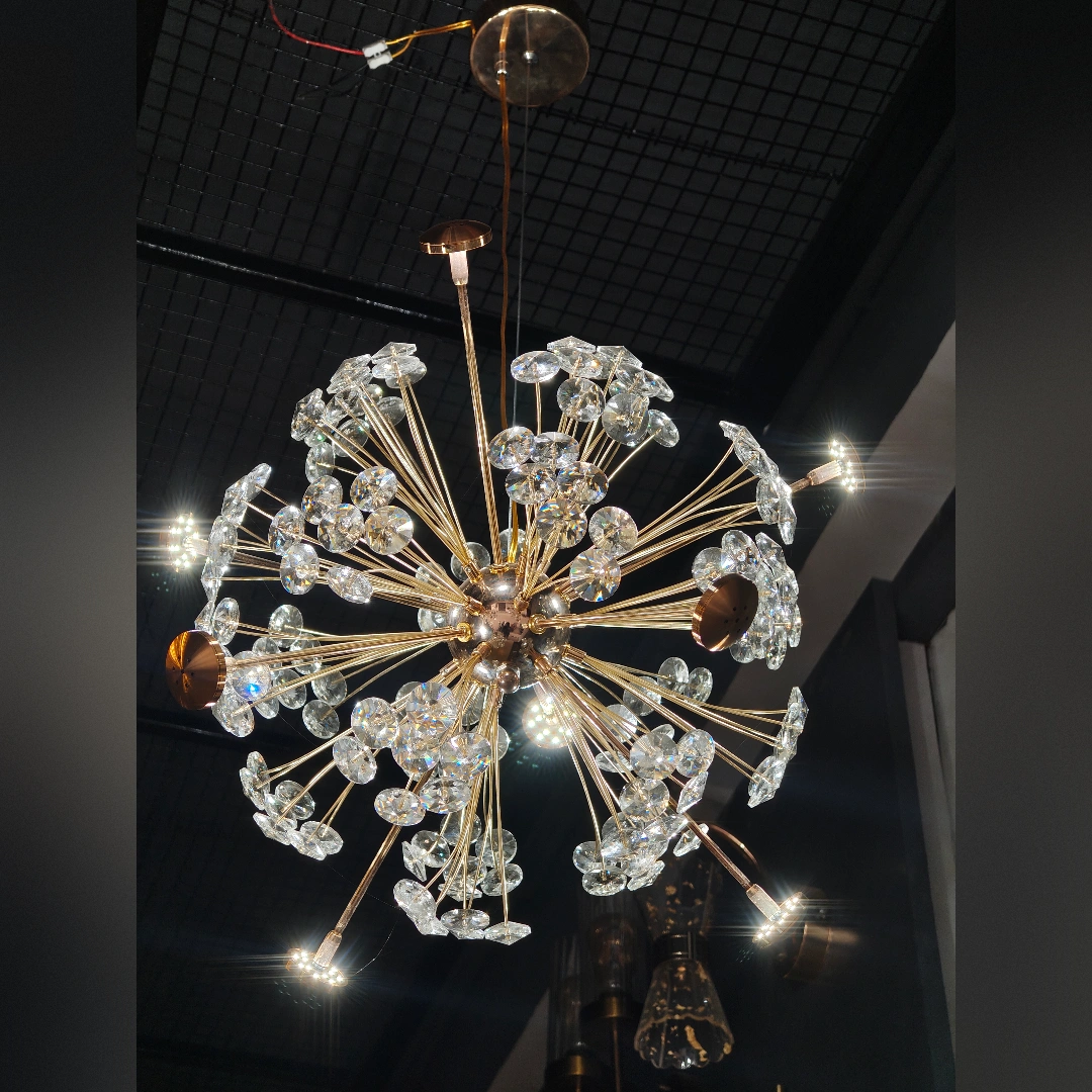 More than just a light fixture, this chandelier is a three-dimensional work of art that happens to provide illumination. During the day, it serves as a stunning sculptural element with its radiating metalwork and sparkling crystals. At night, it transforms into a glowing celestial body that fills your space with warmth, beauty, and sophisticated ambiance.